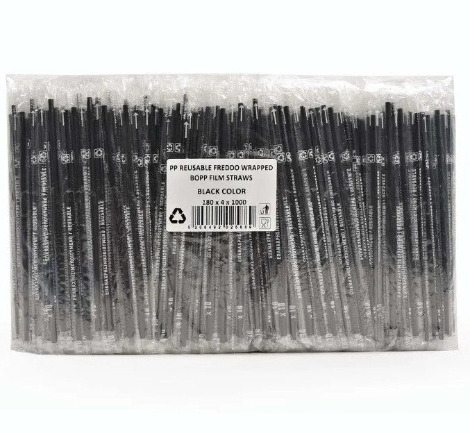 Επαναχρησιμοποιούμενα Καλαμάκια σε Σελοφάν 18cm σε Μαύρο Χρώμα 1000Τμχ