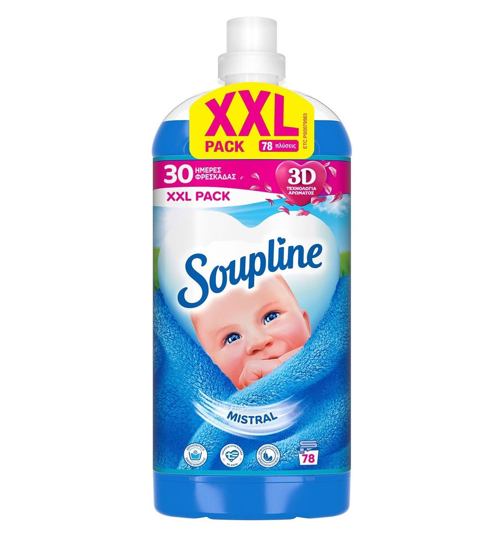 Περιγραφή: Το συμπυκνωμένο μαλακτικό ρούχων Mistral της Soupline είναι ιδανικό για να προσφέρει απαλή υφή στα ρούχα σας. Εισχωρεί στις ίνες των υφασμάτων, διευκολύνοντας έτσι το σιδέρωμα και μειώνοντας τον στατικό ηλεκτρισμό. Επιπλέον, συμβάλλει στη διατήρηση των υφασμάτων, εξασφαλίζοντας ότι τα ρούχα σας παραμένουν σε άριστη κατάσταση για περισσότερο χρόνο.